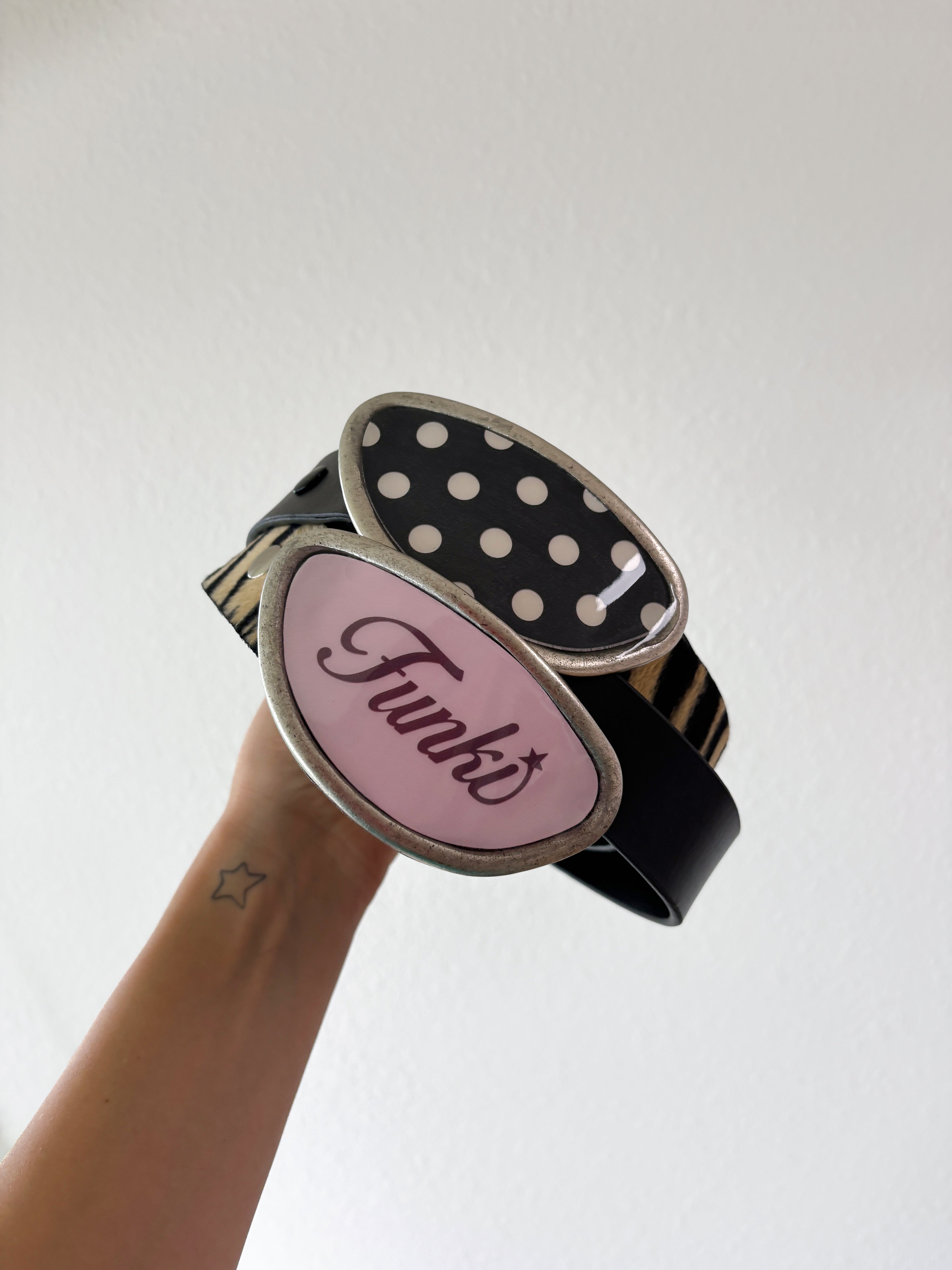 All Funki buckles and pins are dreamed up, handcrafted, and packed with love by Meg. Each piece is made to be collected, cherished, and worn by the boldest superstars.