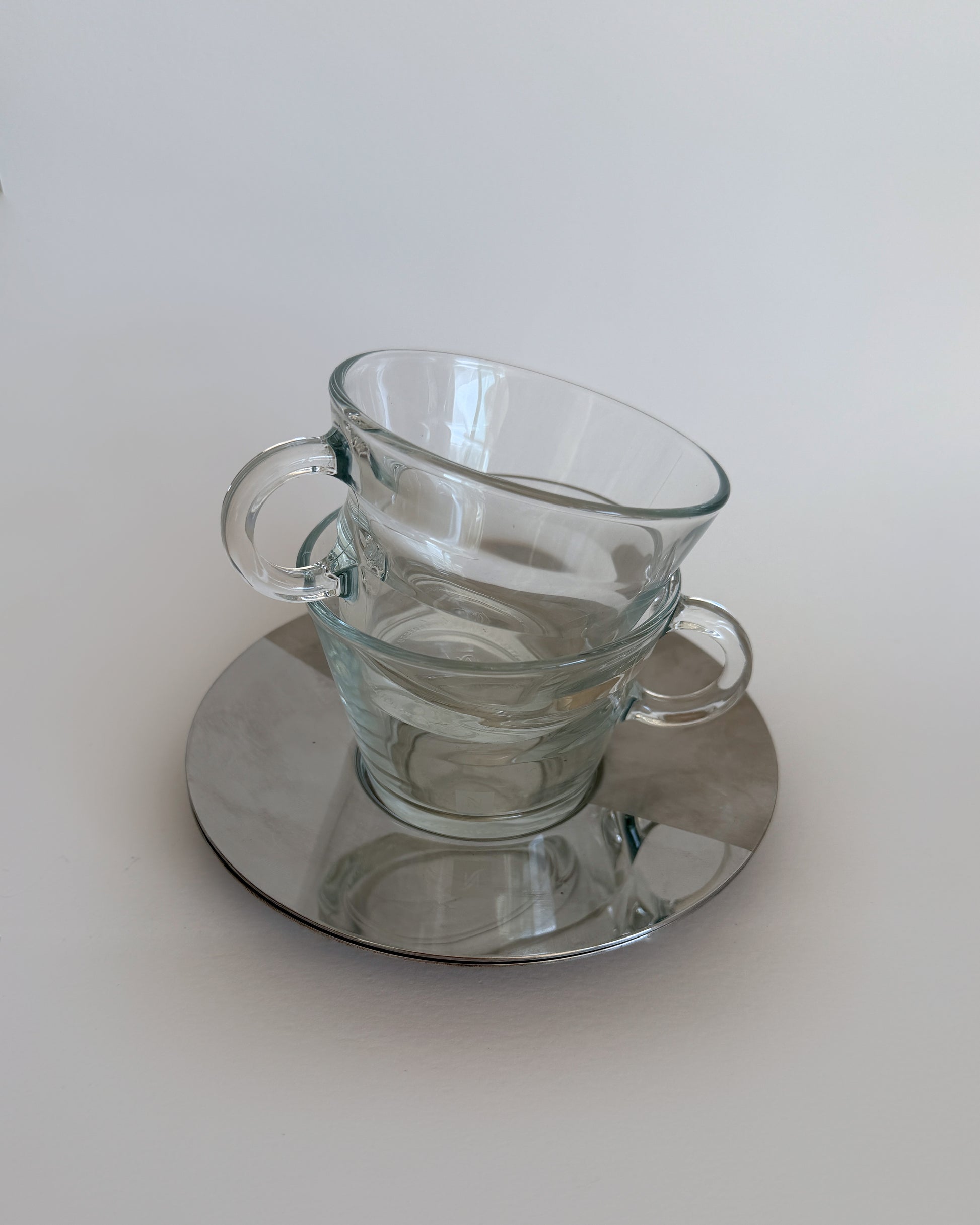 ★ Glass coffee mugs with chrome coasters (set of 2)